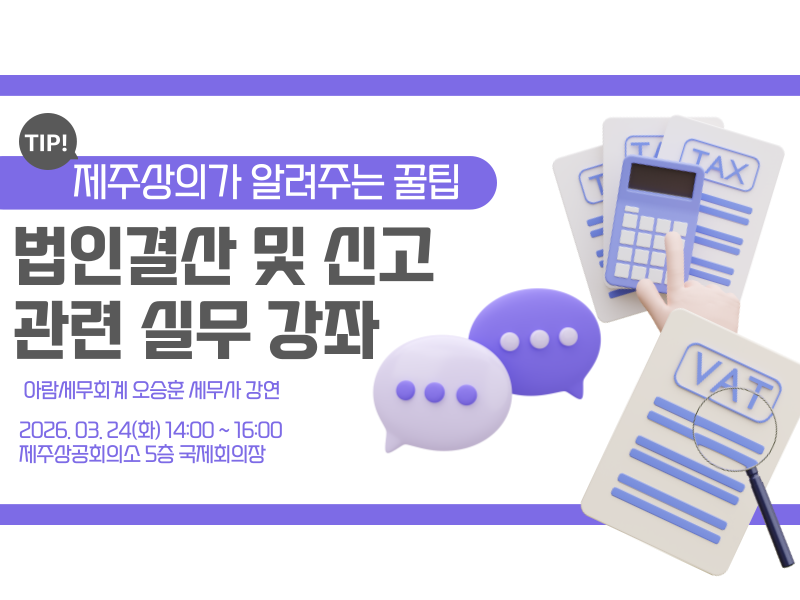 행사일시 : 3월 24일(화) 14:00 ~ 16:00 행사장소 : 제주상공회의소 5층 국제회의장